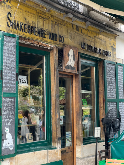 (four pictures in the group) I became slightly obsessed with the Shakespeare and Company story. I read books by Sylvia Beach, the original owner. I read the fictional The Paris Bookseller. So a visit was a must. In one picture, Campbell is reading about the history of the bookstore on our travel app.